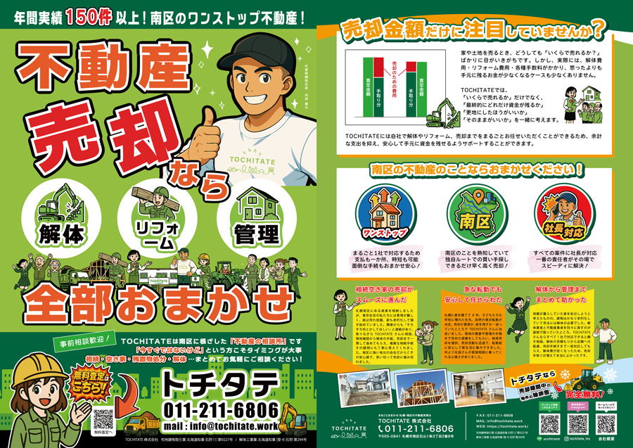 【チラシ紹介】年間実績150件以上!解体から売却までTOCHITATE!
